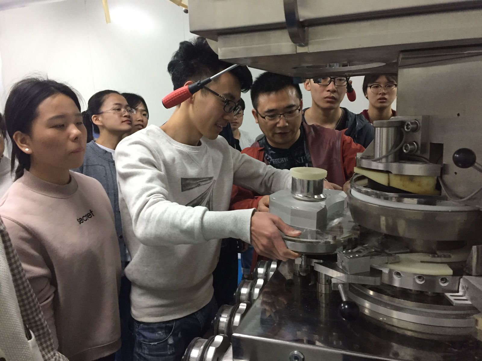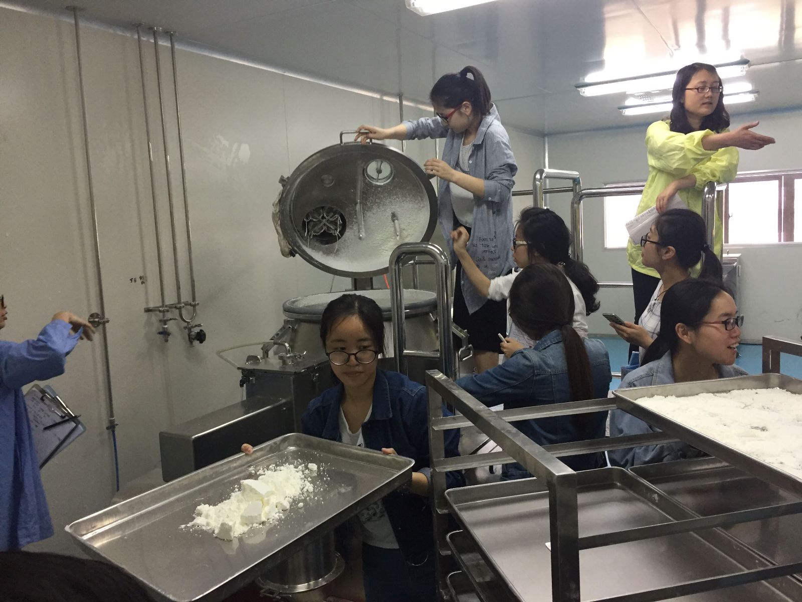 制药工程专业学生在实习指导教师的指导下,学习了固体制剂车间、注射剂车间、冻干粉针剂车间等七类制药生产车间的设备操作及工艺流程,并对制药车间的布局及洁净操作有了深入的学习。大家积极动手操作,认真观察设备构造及车间布局,积极提问并踊跃回答指导教师的提问,展现了91快活林