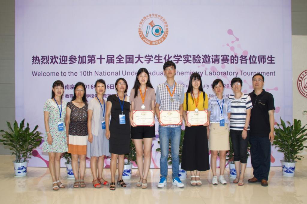 2016年7月6-9日,由教育部高等学校化学教育研究中心主办的“第十届全国大学生化学实验邀请赛”在南京大学仙林校区举行,全国43所高校的129名大学三年级的化学类专业学生和200余名大学化学实验教学的专家与教师参加了本次实验邀请赛。竞赛内容主要包括实验理论笔试和实验操作考试。实验理论笔试的考察范围主要是化学实验理论知识、化学实验操作规范、化学实验室安全知识等。实验操作考试的考察范围主要是化学实验基本技能、实验设计与操作、数据采集和分析、常规和大型仪器的使用、图谱解析、实验总结与报告等。邀请赛中,参赛选手统一参加理论笔试(两个小时)后,通过抽签从无机及分析化学实验、有机化学实验、物理化学实验三个科目中选择各自的实验科目,分别进行实验操作竞赛(八个小时)。这种赛制能够比较客观地体现学生的综合实验技能和理论知识水平,保证大赛的公平、公正。同时,也可从一个侧面反映各高校化学实验教学的总体情况。选手的比赛总成绩由笔试成绩(30%)和实验操作成绩(70%)两部分形成。学生的成绩评定以及分配分别是:金奖 15%,银奖25%,铜奖35%。