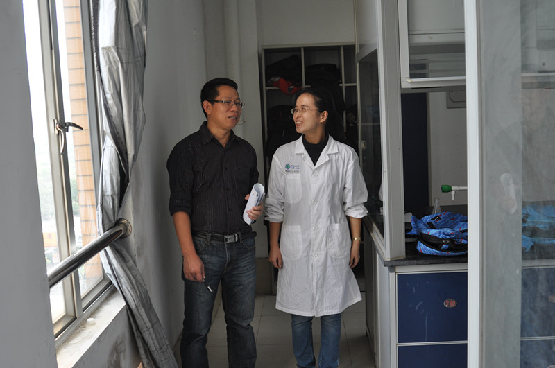 他还与方昕、吴韶华、谢莉莉等实验指导老师亲切交谈,并对实验教学中心的卫生环境和防护保障措施表示了肯定。