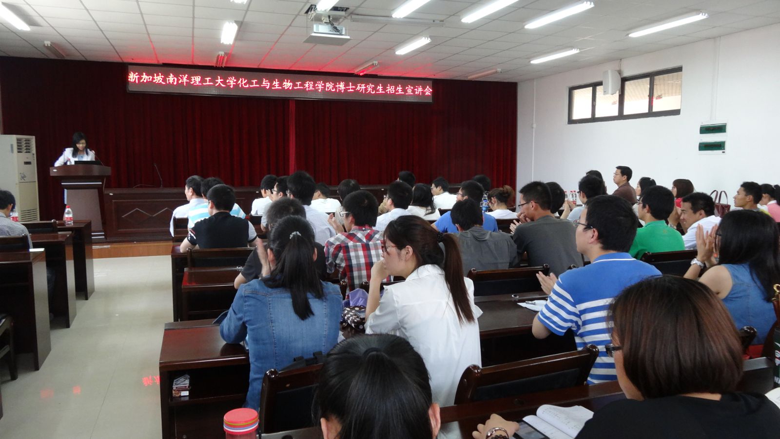 2013年5月13日下午,新加坡南洋理工大学招生宣讲会在嘉锡楼举行。新加坡南洋理工大学化工与生物工程学院副院长Prof. Xu Rong及博士生导师Prof. Yang Yanhui教授,91快活林