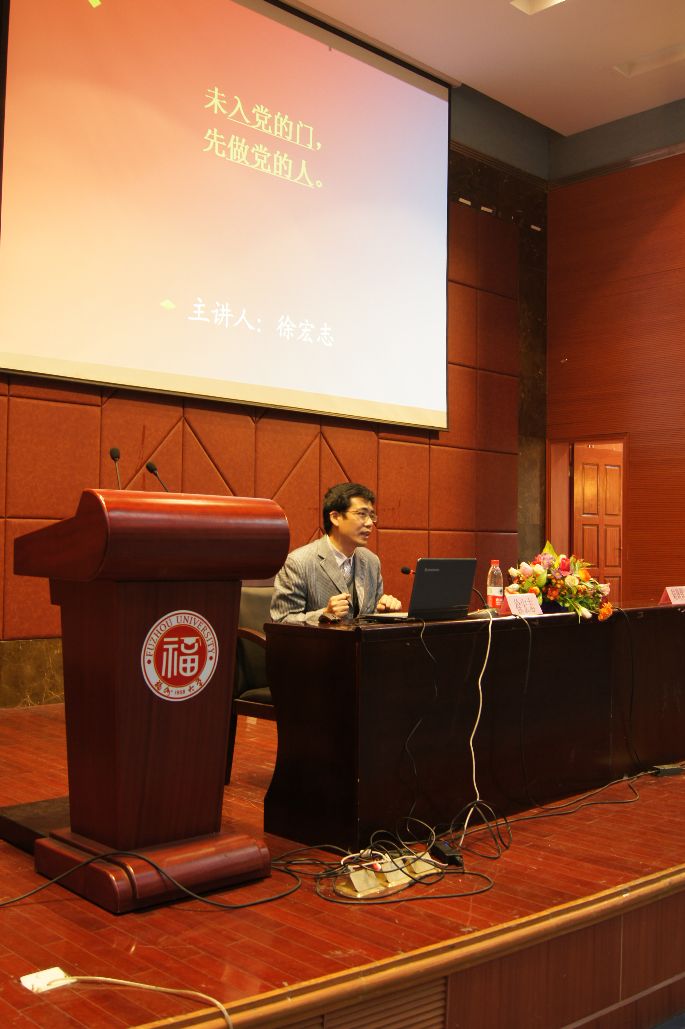 积极分子做本次培训第三讲的讲授,《未入党的门,先做党的人》,阐述了一个很常见,但是很难做到的道理——身未入党,思想先入党,以党员的标准严格要求自己。徐老师的课很精彩,在整个上课的过程中,掌声不断,给同学们上了很好的一课。