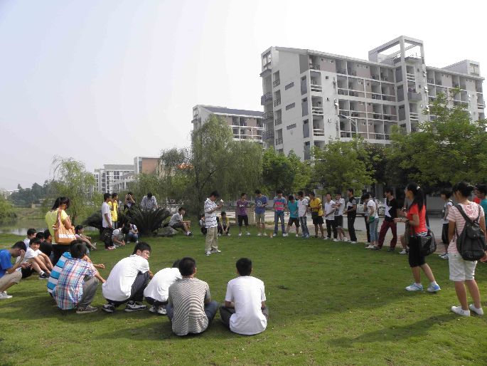 于此同时室外草坪上2011级基地一班玩“真心话大冒险”,活动逐步升入高潮,同学们个个都玩得不亦乐乎。活动现场气氛高涨,一个个游戏让原本拘束的场面顿然消失。最让人兴奋还属个人才艺表演,有唱歌的、有跳舞的、有搞笑的、也有介绍自己家乡的……各式各样的表演让此次破冰活动更加耐人寻味。过控班,化制班的同学丝毫也不逊色,载歌载舞,欢乐不断,在一阵阵的欢声笑语中,人与人之间的距离,也在一次次微笑的招呼中互相拉近。