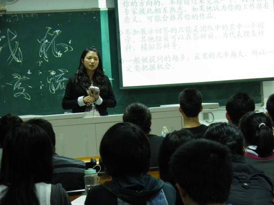 参加本次交流会的主要是大一,大二的同学。以一位学姐对“挑战杯”的介绍为开场,大家纷纷燃起了勃勃兴致和满腔期待。接着前学生会主席郑永赞学长为大家介绍了这届挑战杯国赛的比赛流程。他说今年参赛的各支队伍需要在2010年12月申报给学院,然后在2011年3月份左右参加学校的比赛。如果项目优秀就有机会晋级2012年6月份的省级比赛。而由省赛走出来的最后几支队伍则能够在2013年1的1国家级比赛一展我们福大学子的风姿。此外他还提到了参加“挑战杯”作品的一些要求。在最后他恳切地和学弟学妹们分享了自己参赛时的一些宝贵经验。
