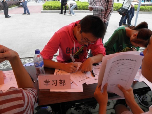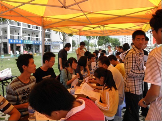 化学化工学院在生活三区举办院学生会纳新宣传活动。这次宣传的目的是让新生们对学生会部门设置有大体上的了解,同时发放表格,鼓励他们积极填报。