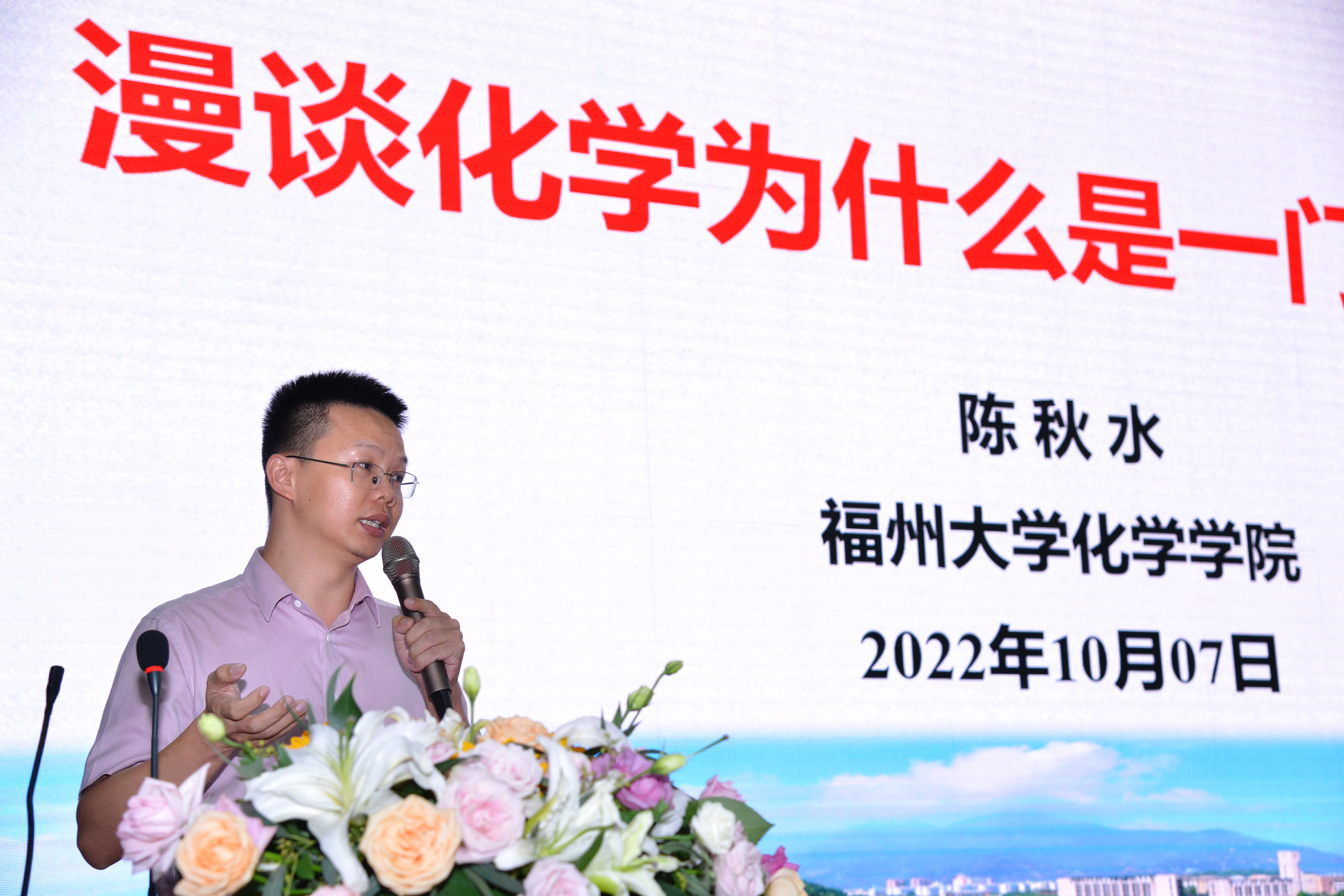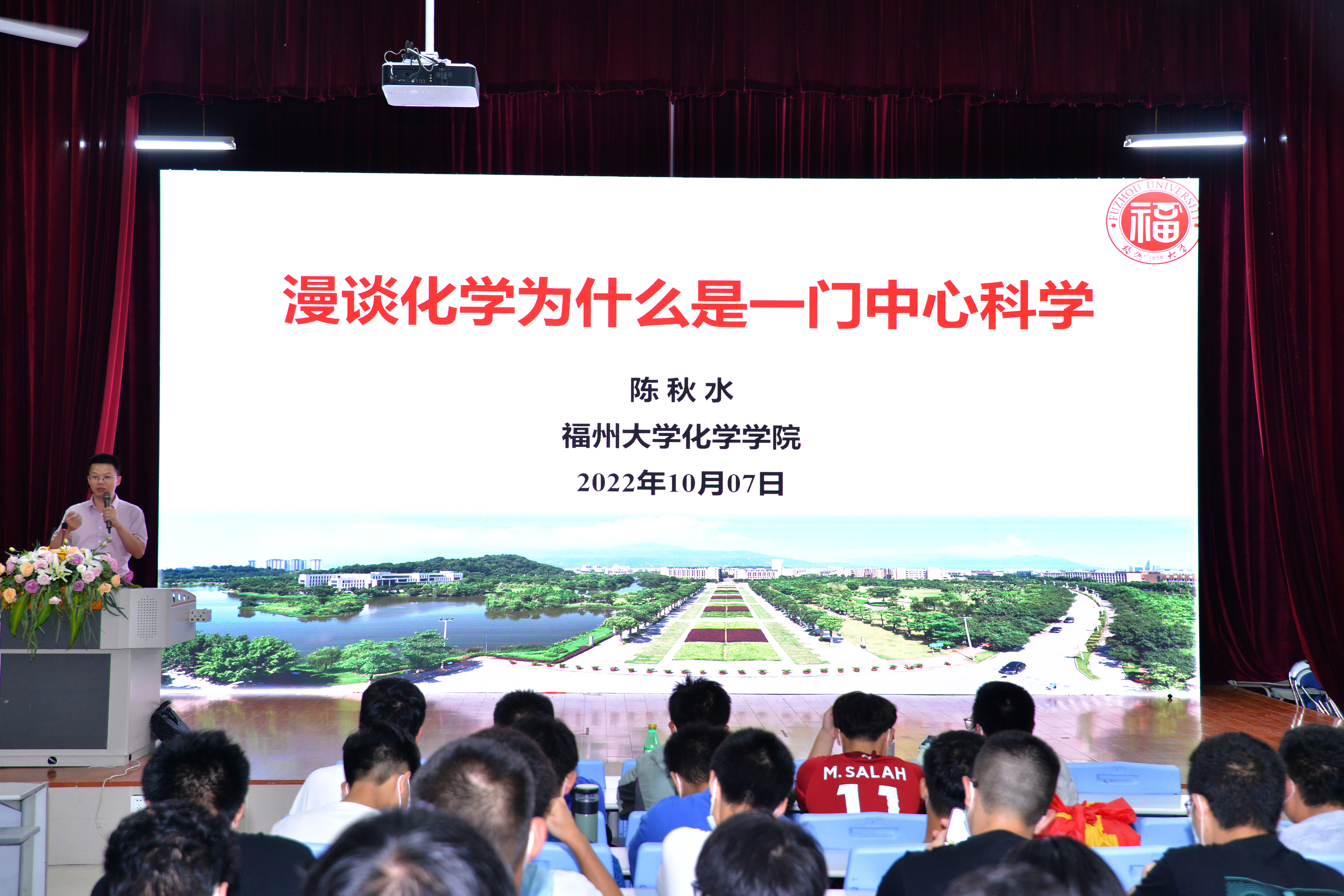 中场休息后,国家级青年人才、2005级福大化学基地班本科生、近年来在国际顶级期刊《Nature》上发表两篇学术论文的陈秋水教授结合个人的求学经历,以《漫谈化学为什么是中心科学》为主题,向大家分享了一位老学长的体会。陈秋水老师强调化学新材料是新时期的底盘技术,是承上启下的中心科学。陈秋水老师还对同学们“如何跨入科研的第一步,学会阅读英文文献?”“如何学会无机化学等专业课,有没有小秘籍?”“是否有机会去老师实验室参观?”等问题做了仔细回答,鼓励同学们在接下来的学习生活中,通过一些官方公众号,主动关注科技前沿,特别是要有攻克“卡脖子”技术的勇气和自信,以科研创新助力现代化强国建设。