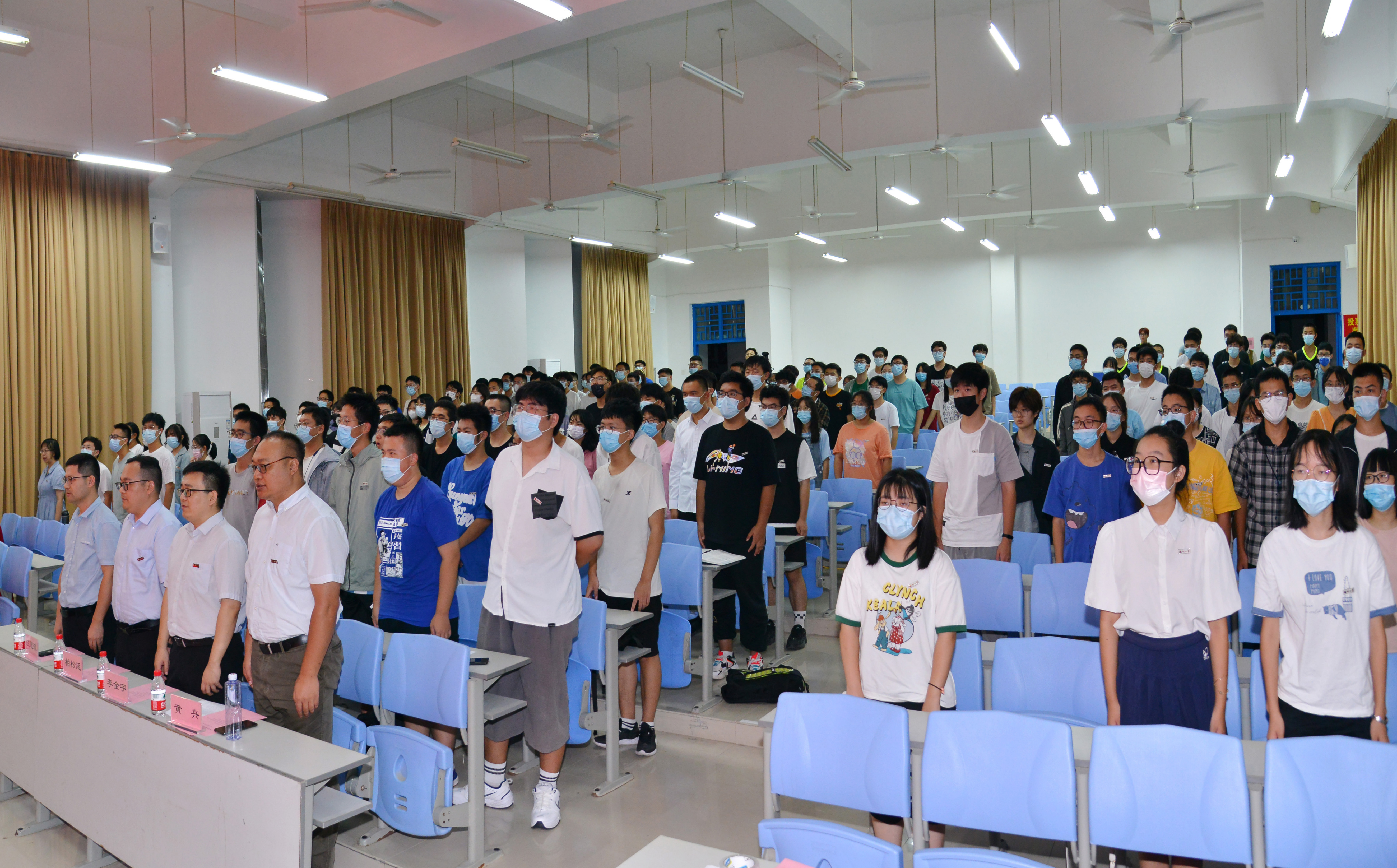 伴随着《义勇军进行曲》的奏响,全体师生肃立,共唱国歌,开学典礼正式开始。