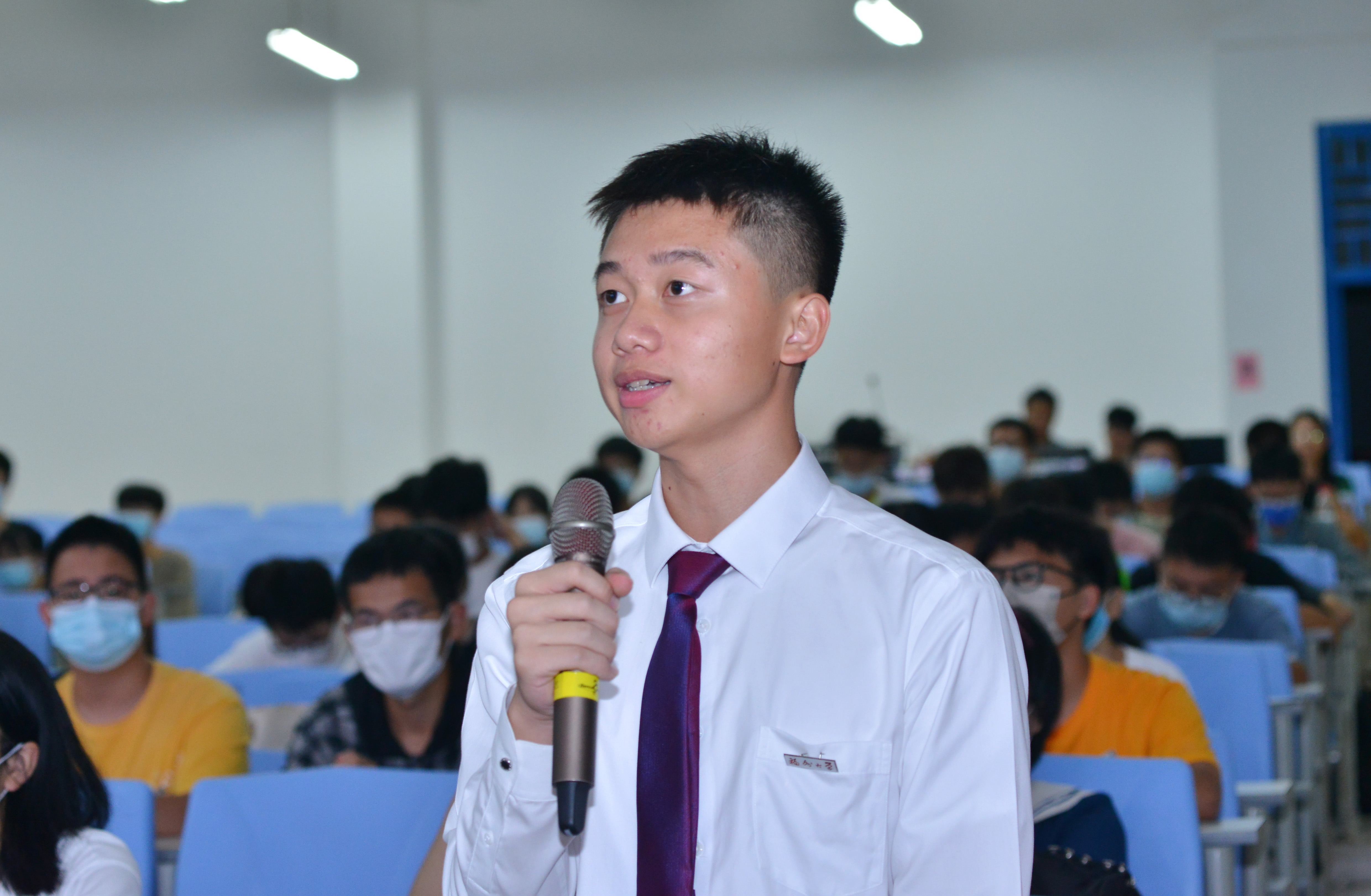 ?为什么选择化学专业?大学我要怎么过?”进行发言,并表示在接下来的大学生活中,将努力做到“五个一”:踏实上好每一节课,认真完成每一次作业,坚持一项体育运动,参与一个科研项目,从事一份学生工作。