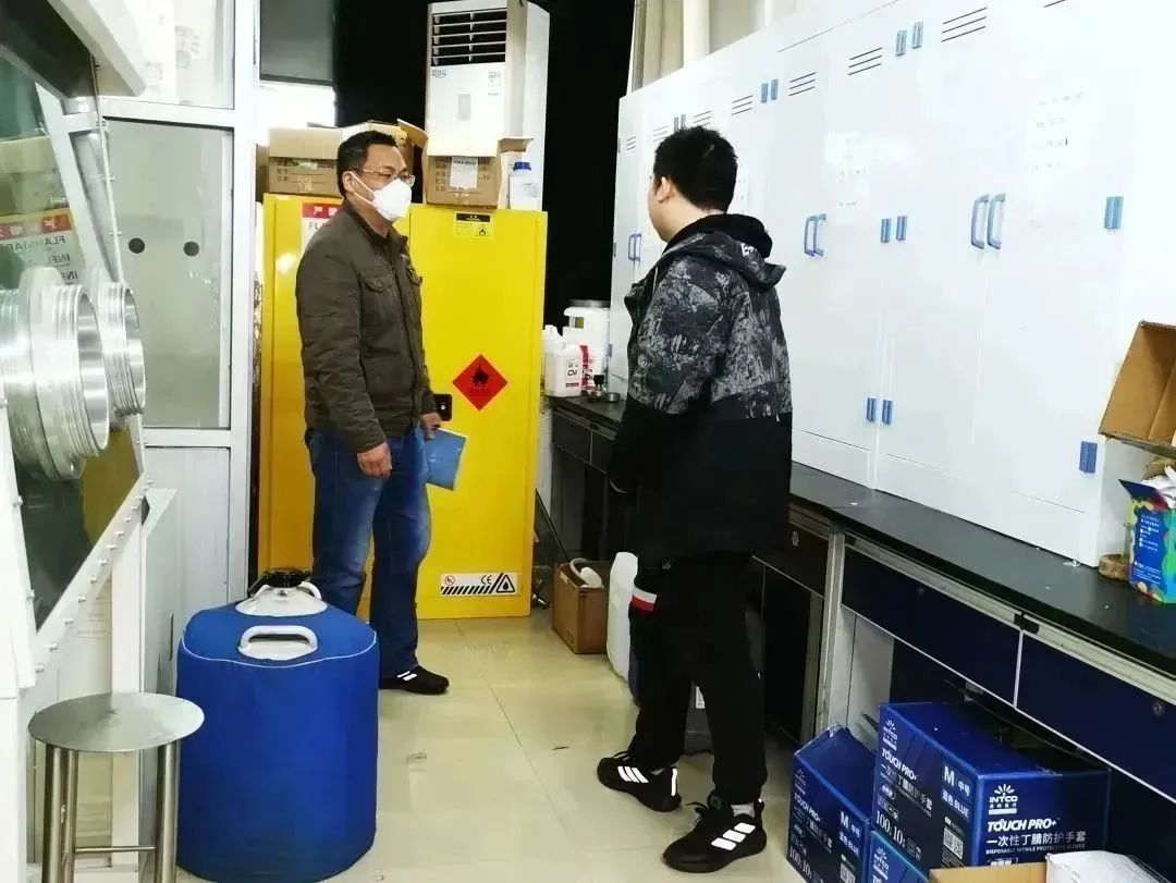 寒假期间,郭飞云老师坚守岗位,几乎每天都进行实验室安全巡检。