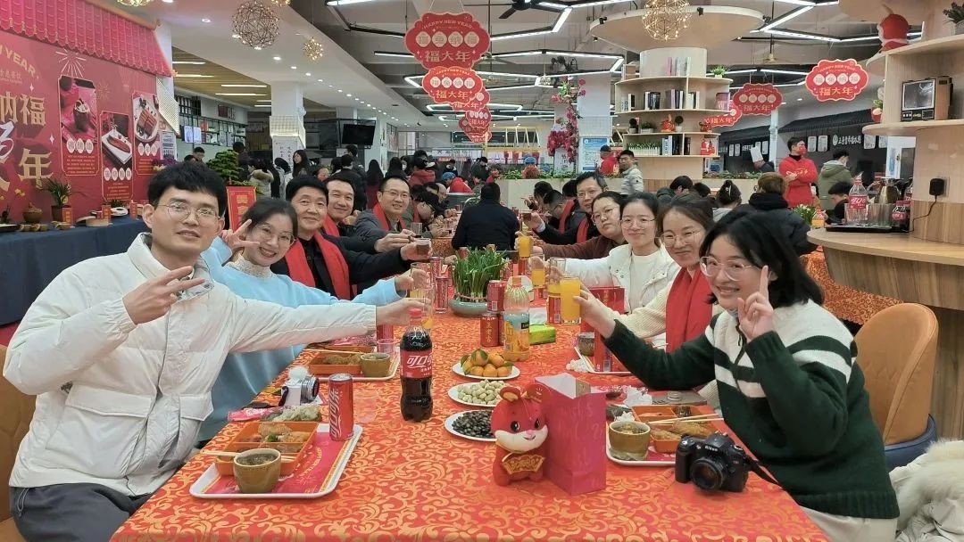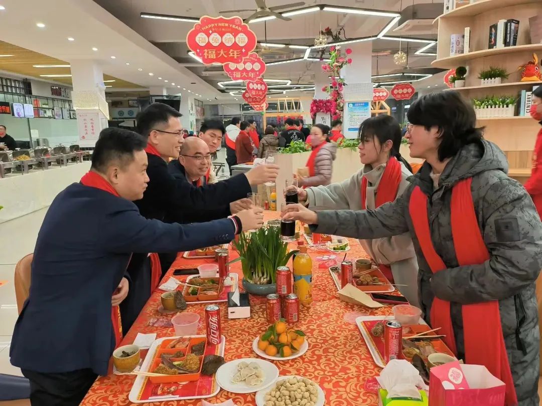 晚上,师生共进年夜饭,度除夕、共联欢。校党委黄身勇副书记为留校师生送上了新春祝福,在欢乐热闹的氛围里,同学们度过了一个特别的新年。