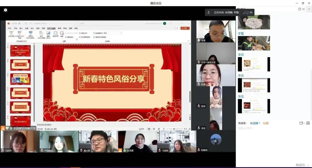 研会、学生会组织了特别的视频连线活动。已经返乡的学生跟在校学生视频,一同欢度春节,互相送上新年祝福。辅导员们也在群里跟学生互动,送上美好的新春祝福。