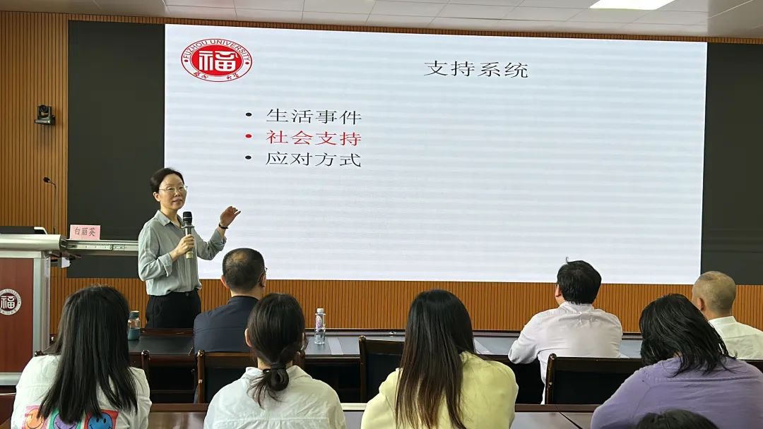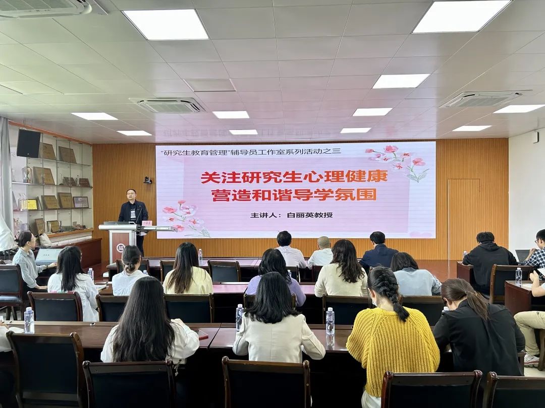 2023年5月9日下午,研究生教育管理辅导员工作室在嘉锡楼413会议室开展第三次活动,邀请人文学院白丽英教授作《关注研究生心理健康,营造和谐导学氛围》专题讲座。来自工作室的成员、部分学院党委副书记及研究生辅导员参会,异地校区成员以线上方式同步参与。