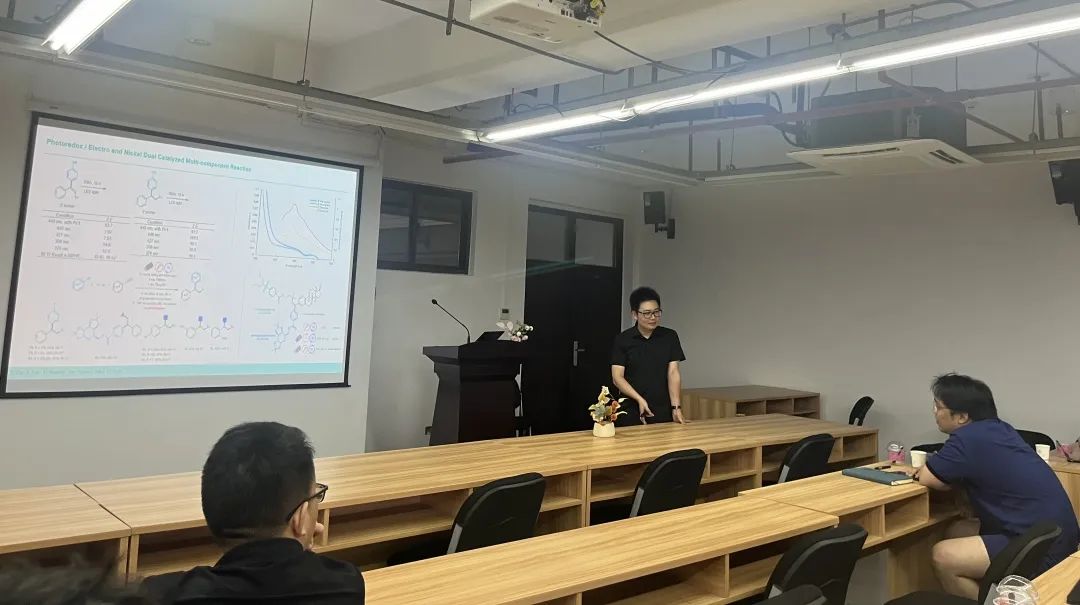 接着,岳会锋老师做了以《镍催化偶联反应的化学、区域和立体选择性控制》为题的学术报告。镍是一种廉价、丰富的金属,具有良好的催化活性和选择性,因此被广泛应用于有机合成中。岳会锋老师发展了镍催化迁移双官能团化的策略,从结构简单烯烃原料出发,高效区域和立体选择性地合了成一系列多取代杂环化合物,为合成功能性杂环化合物提供了新思路。岳会锋老师还通过光氧化还原电镍双催化多组分反应,利用Ni-催化炔烃的碳双官能团化反应合成了多取代烯烃。