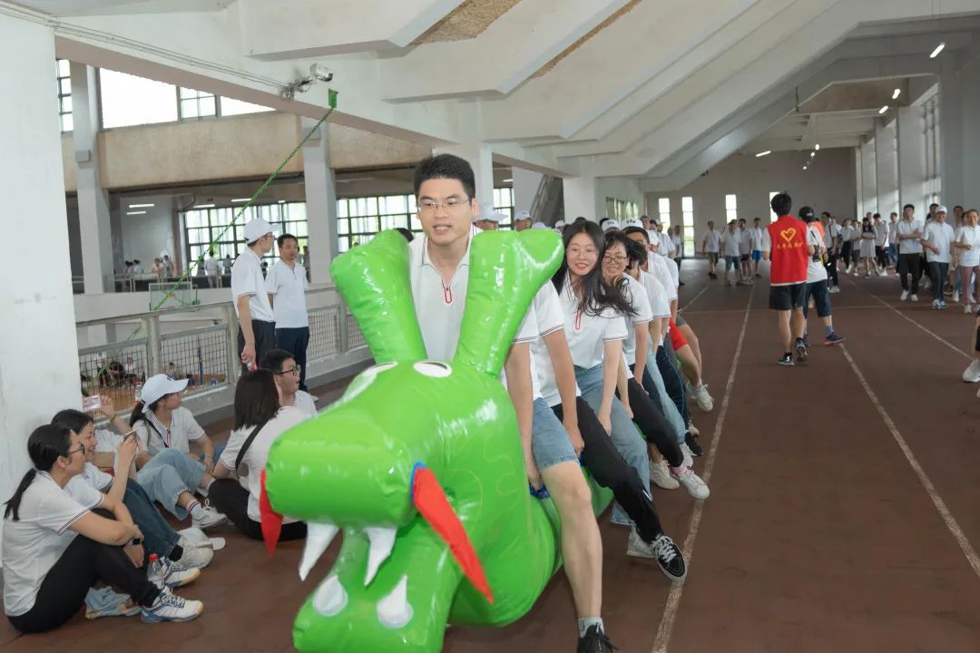 健步走过后,趣味运动会随即开始,活动设置了集体跳绳、篮球接力、提绳踏板、龙行天下四项团体比赛项目。趣味之余,91快活林