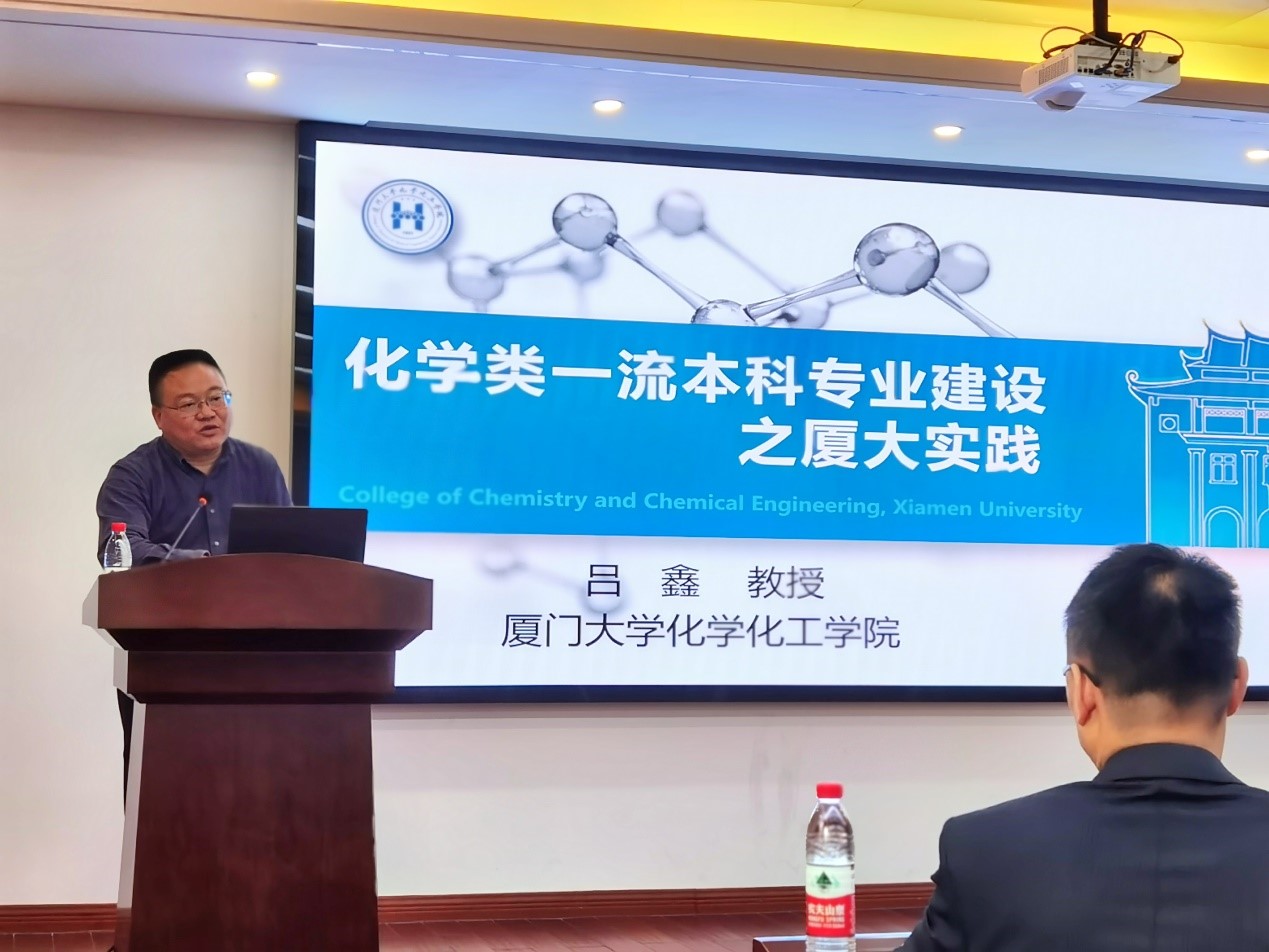 研讨会上,厦门大学吕鑫教授做了题为《化学类一流本科专业建设之厦大实践》报告。吕老师首先给大家回顾了厦门大学化学专业建设的历史及重要节点,以及厦大化学“敢为先、重细节、合为贵”的学科文化,介绍了德育为先的浸润式育人环境、科教融合的教学体系、多维度分层次的专业人才培养体系,通过具体的课程设置详解在本科专业建设中如何打通学科壁垒,突出交叉融通;最后从国家级基地建设、一流专业建设、新创专业以及国家级虚拟教研室建设四个方面介绍了建设成效。