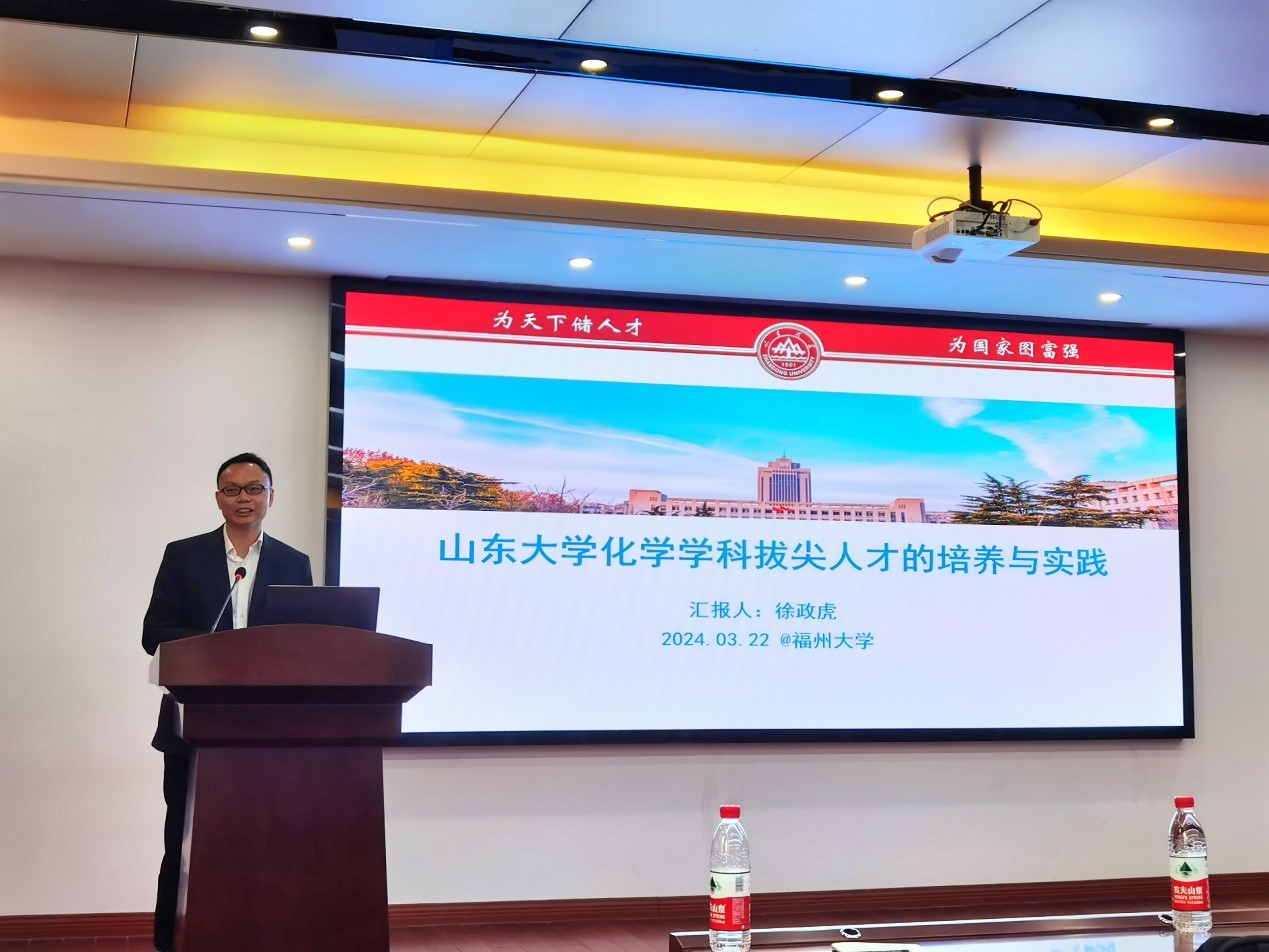 山东大学徐政虎教授做了题为《山东大学化学学科拔尖人才的培养与实践》的报告,从历史沿革、学科支撑、专业平台、杰出校友、培养体系等方面介绍了近年来山东大学在拔尖人才培养方面的情况;并着重介绍了其“厚基础、重实践、宽口径、多交叉”的本科生培养理念,“综合性、开放性、立体化”实践教学体系,以及为拔尖人才培养所设置的国际化暑期学堂、菁英班等举措;最后从本科生发表论文、参赛情况以及升学情况等方面介绍了其建设成效。