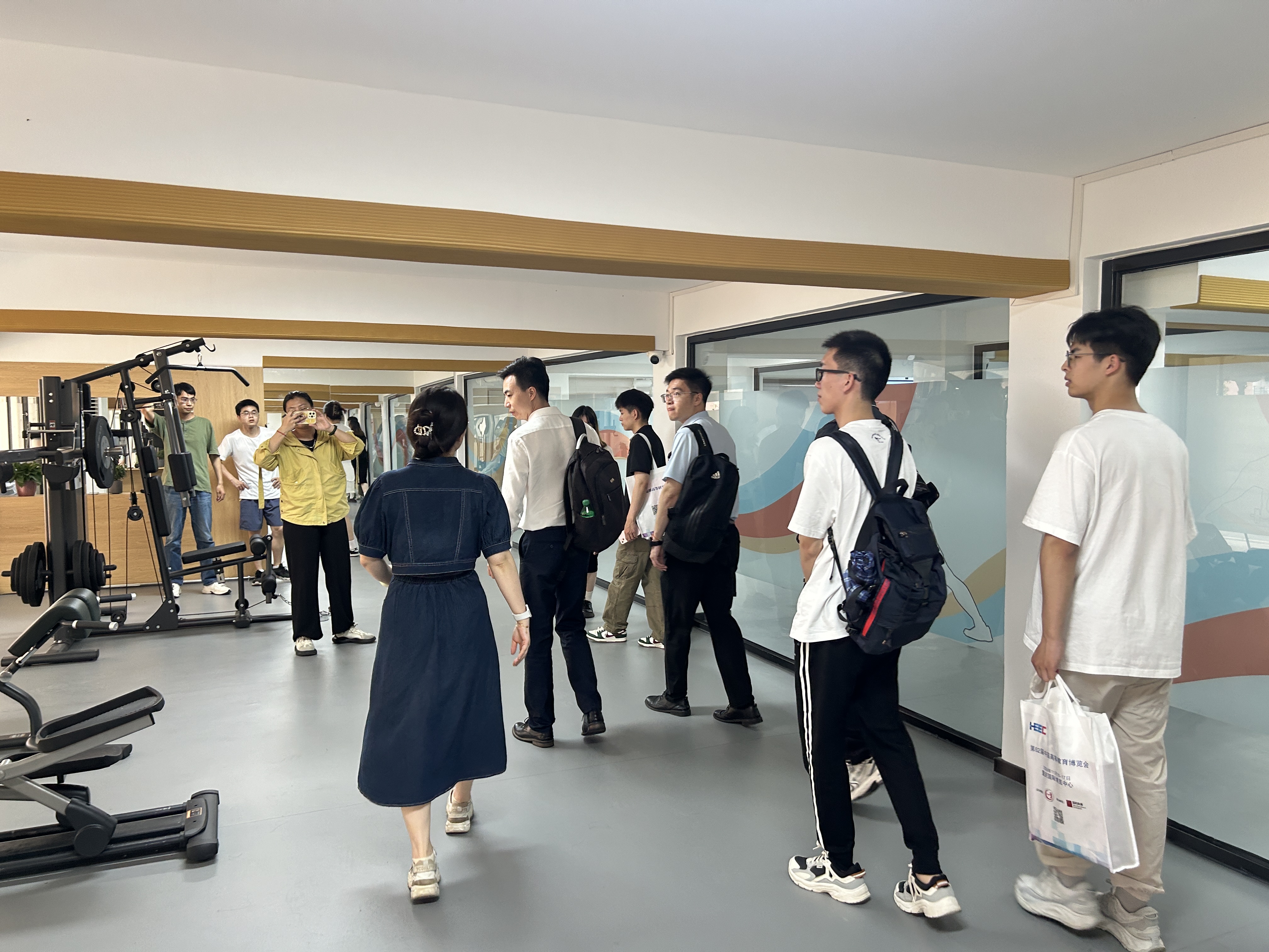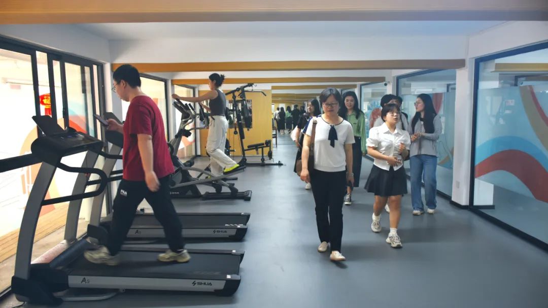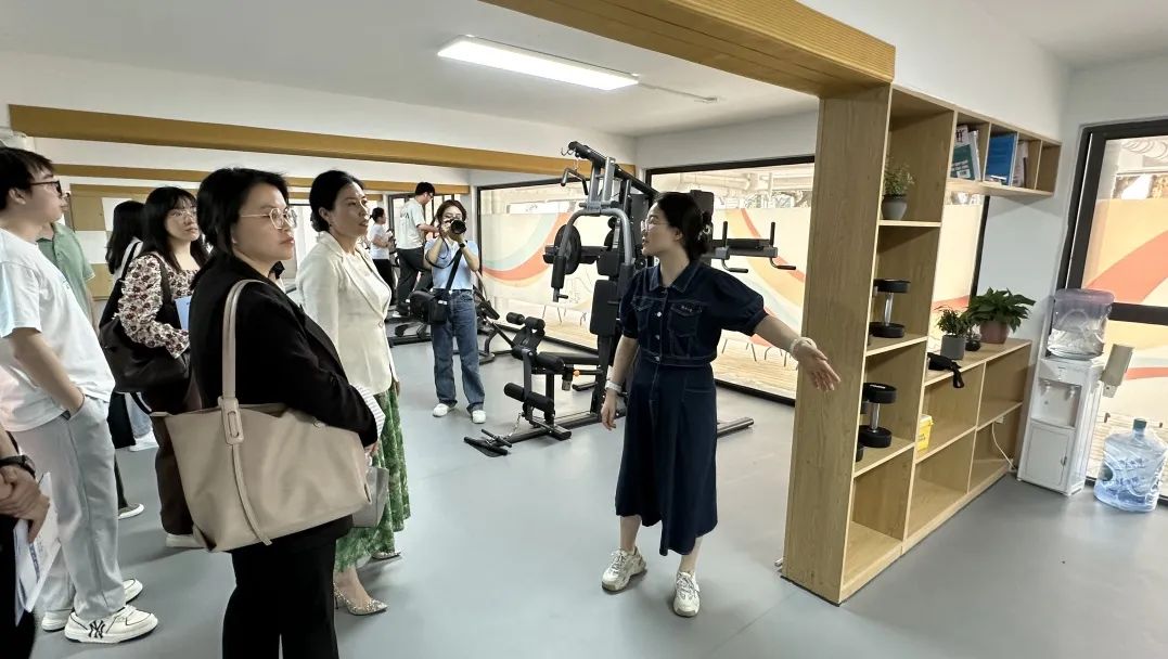 来自七所高校的师生代表首先参观了60号楼大厅,随后踏足室外休闲共享空间、水吧台、器械室以及瑜伽室等多个场所,深入了解了学生生活五区60号楼楼宇兼合党支部和“一站式”健身活动共享空间的建设情况。师生代表们纷纷表示,这一空间为学生们提供了丰富多样、充满吸引力的运动选择,既有助于增强体质,又能为全面发展打下坚实基础。