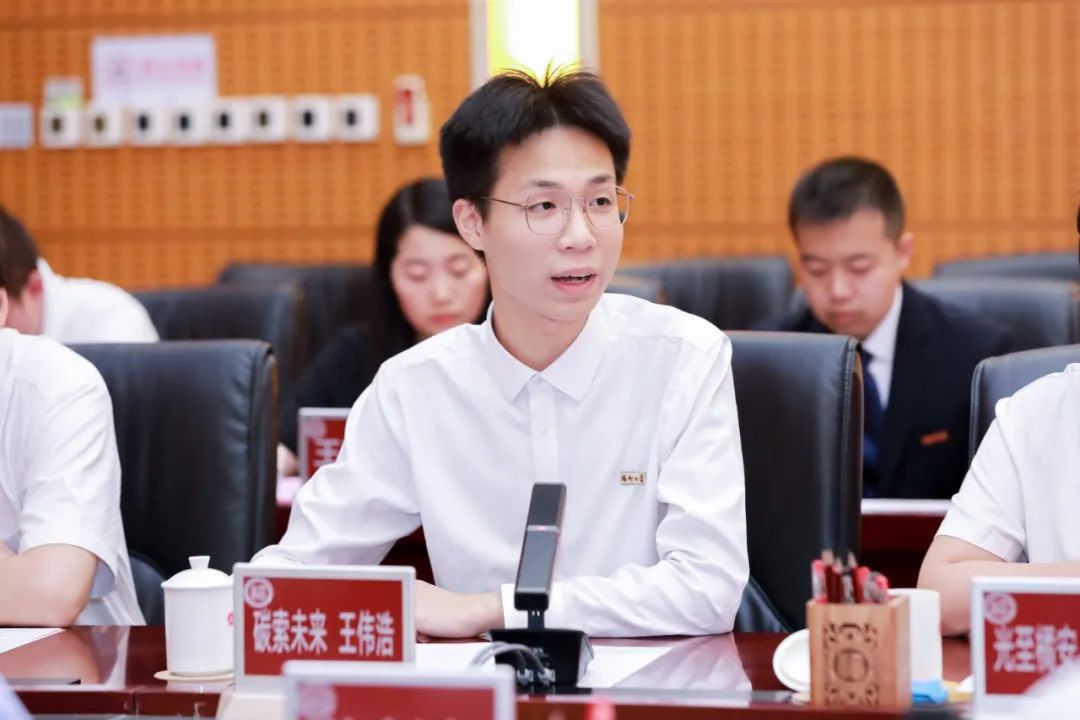党委常凯副书记、国家级青年人才郑远辉教授、2021级嘉锡化学拔尖班本科生王伟浩、2022级生物化工专业博士生陈李云在座谈会上作为代表发言