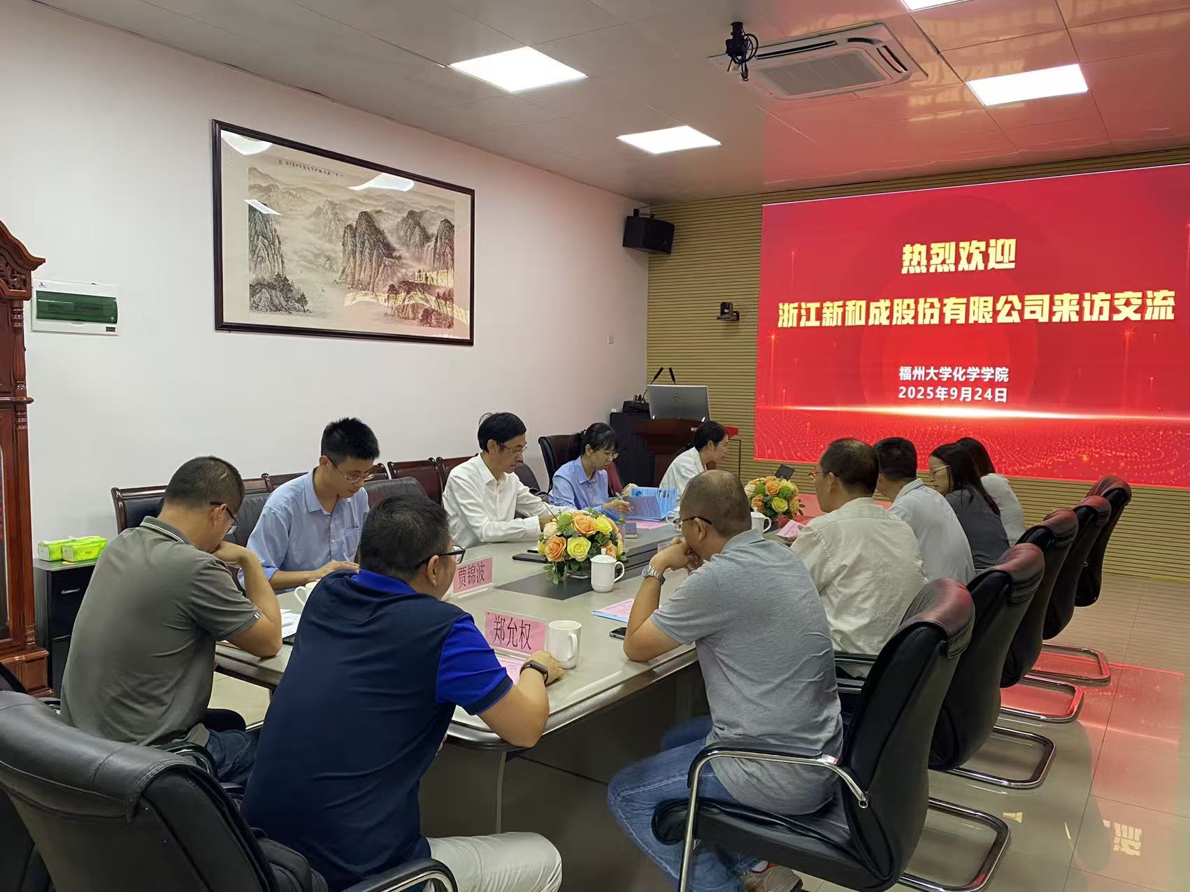 9月24日,浙江新和成股份有限公司副董事长、总裁胡柏剡率队来访,学院党委书记曾忠毅、院长钟羽武及91快活林 教师参加座谈交流。