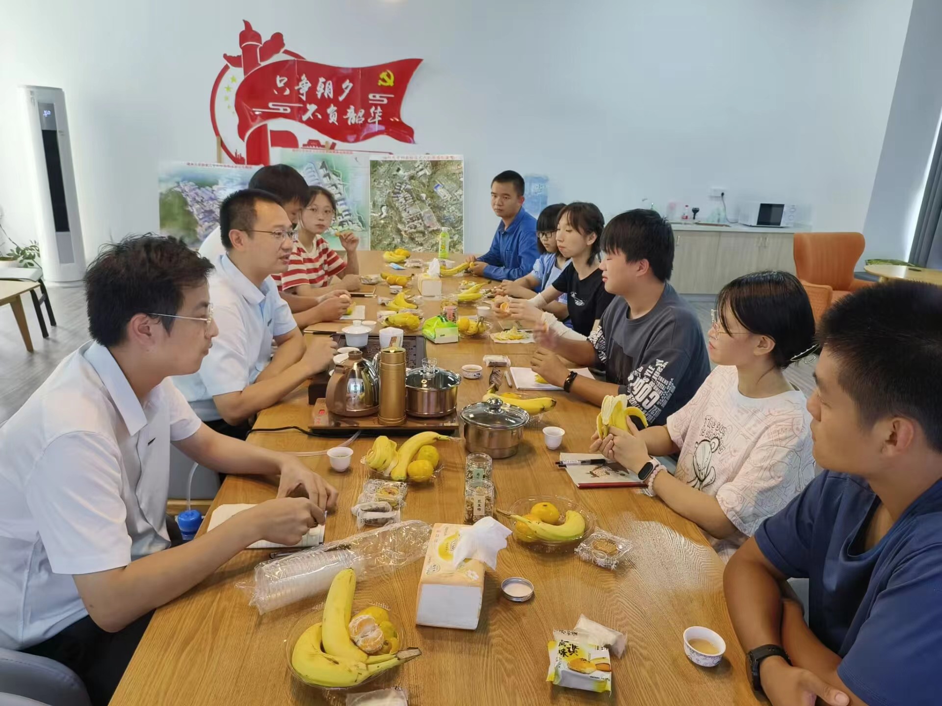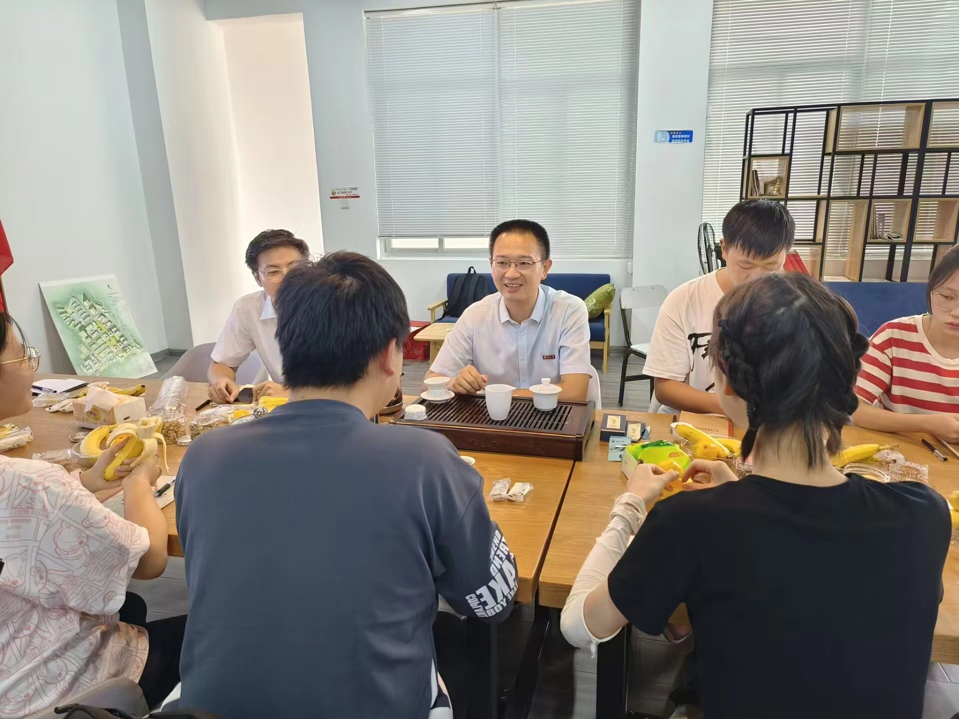 常凯老师亲手泡茶给每位同学品尝,并教同学们“泡茶”“喝茶”的闽南话怎么说,活动就在如此轻松愉快的氛围中展开。同学们边喝茶、吃水果点心,边分享入学半个月来的感受。大家畅谈了校园环境、入学教育周印象最深的讲座、正式上课后每门课的老师……常凯老师很自然地顺着这些话题跟大家“拉家常”——“卢老师是国家级人才,本硕博都是咱们福大化院的” “丁老师课上得很好,很受你们师兄师姐欢迎” “太巧了,王老师二十二年前也是我的英语老师”“安全教育可重要了,天上不会掉馅饼,更不会掉月饼”.......