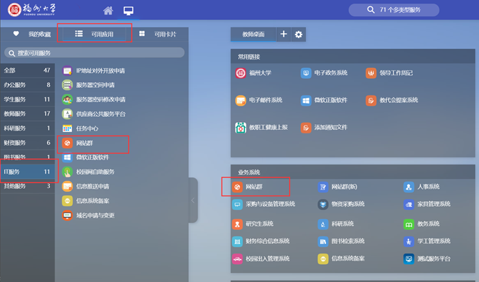 二、登录成功后:选择业务系统->网站群,如下图所示: