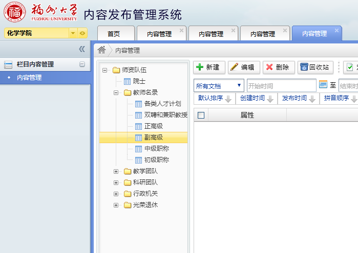 选择“栏目内容管理中->内容管理”,如下图所示: