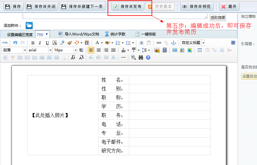 注意:首次修改完成后需联系办公室删除网站中的旧简历