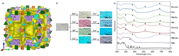 郑寿添课题组报道了一类纯无机的高核多铌氧簇基框架材料。该材料展现了有趣的离子交换行为且在离子交换后能保持高的结晶度。该团队通过离子交换获得了十余例高质量的单晶结构,并在原子精度水平上对结构中独特的高核多铌氧簇的离子交换行为、选择性和交换机理进行了深入研究。
