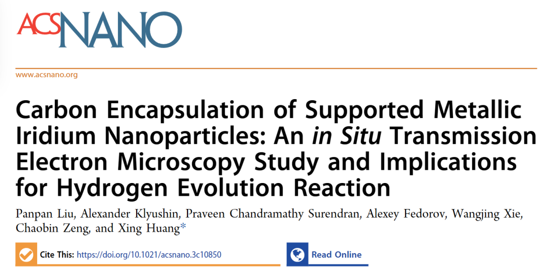 黄兴教授课题组在国际知名期刊ACS Nano上发表题为“Carbon Encapsulation of Supported Metallic Iridium Nanoparticles: An in Situ Transmission Electron Microscopy Study and Implications for Hydrogen Evolution Reaction”的研究论文。