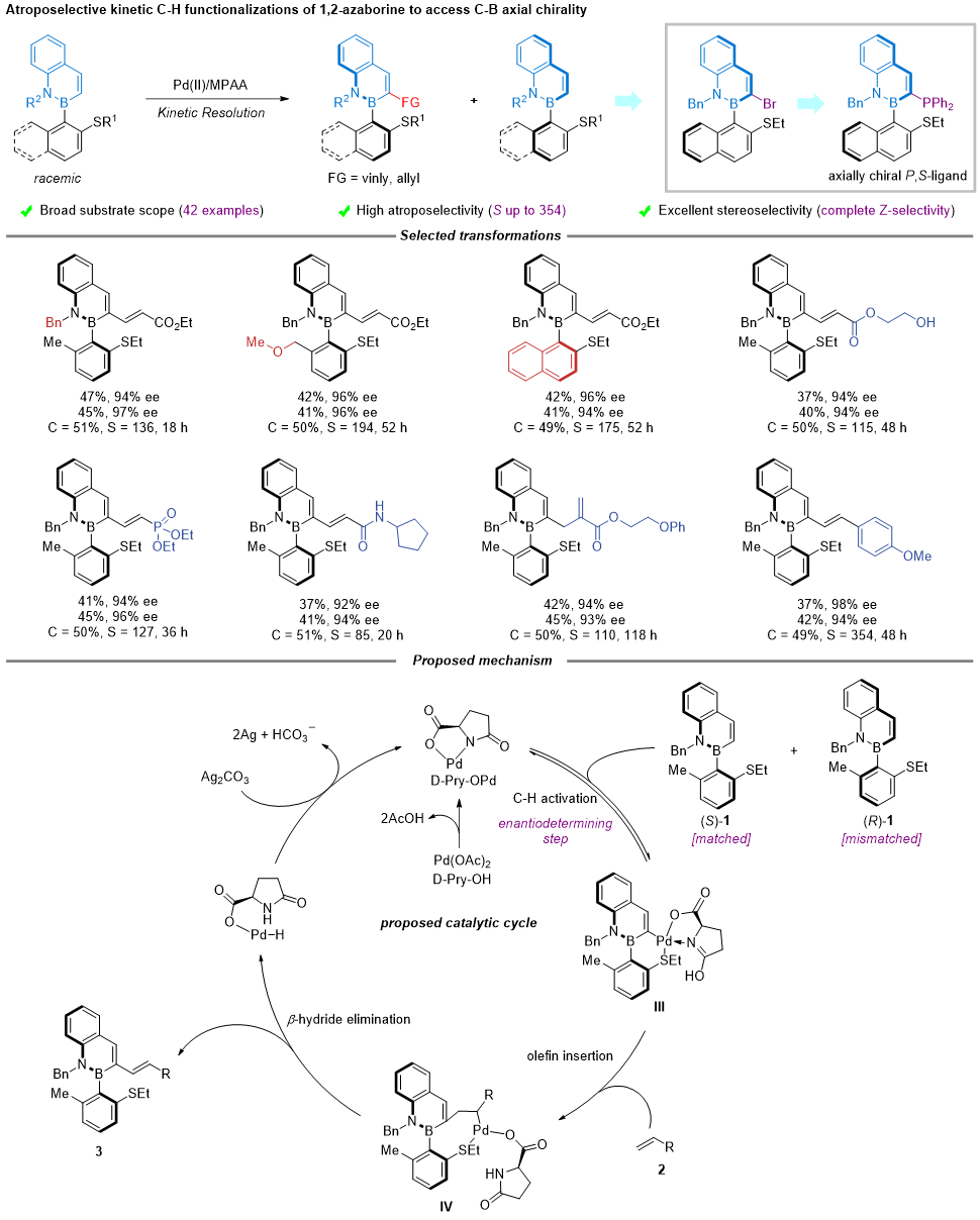 “Palladium-Catalyzed Atroposelective Kinetic C−H Olefination and Allylation for the Synthesis of C−B Axial Chirality”, Angew. Chem. Int. Ed. 2023, e202313388, doi.org/10.1002/anie.202313388。