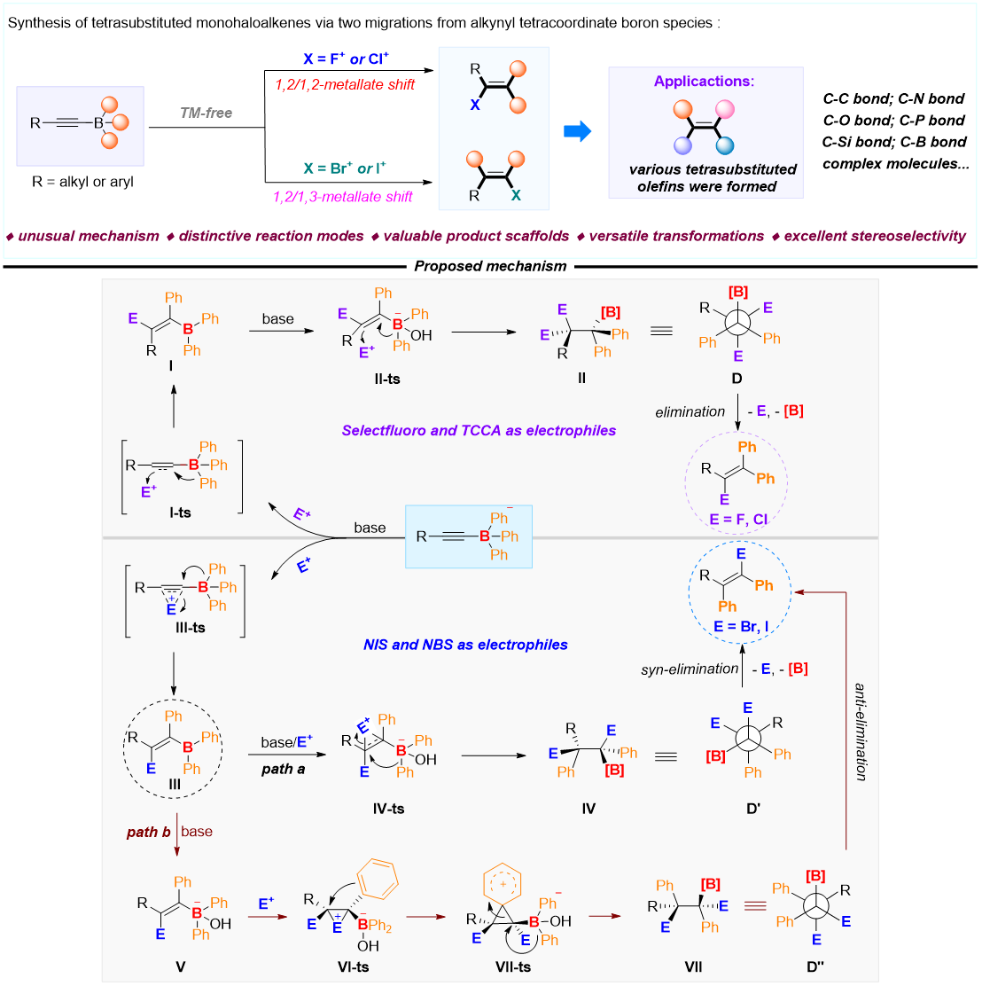 “Modular assembly of versatile tetrasubstituted alkenyl monohalides from alkynyl tetracoordinate borons”, Chem 2023, 9, 1164-1181。