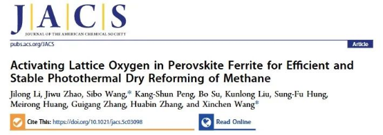 “Activating Lattice Oxygen in Perovskite Ferrite for Efficient and Stable Photothermal Dry Reforming of Methane”, Jilong Li, Jiwu Zhao, Sibo Wang*, Kang-Shun Peng, Bo Su, Kunlong Liu, Sung-Fu Hung, Meirong Huang, Guigang Zhang, Huabin Zhang and Xinchen Wang*, J. Am. Chem. Soc. 2025, 147 (17), 14705-14714. DOI: 10.1021/jacs.5c03098.