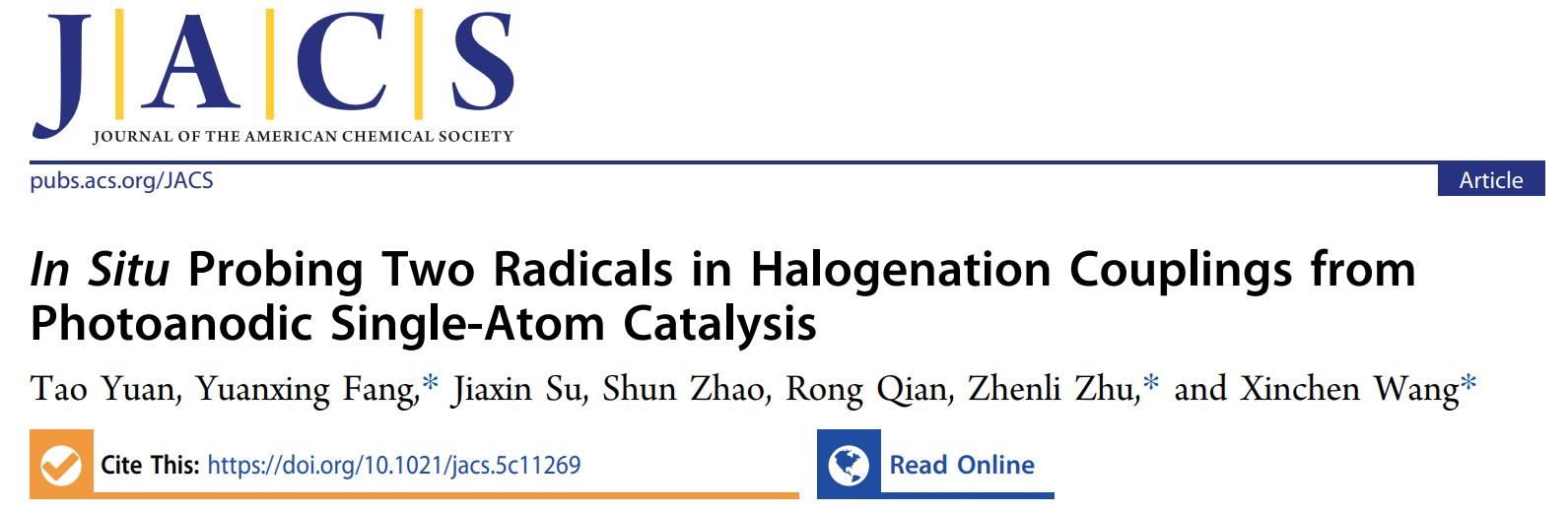 论文信息:“In Situ Probing Two Radicals in Halogenation Couplings from Photoanodic Single-Atom Catalysis”, Tao Yuan, Yuanxing Fang*, Jiaxin Su, Shun Zhao, Rong Qian, Zhenli Zhu*, Xinchen Wang*, J. Am. Chem. Soc. 2025, DOI: 10.1021/jacs.5c11269.