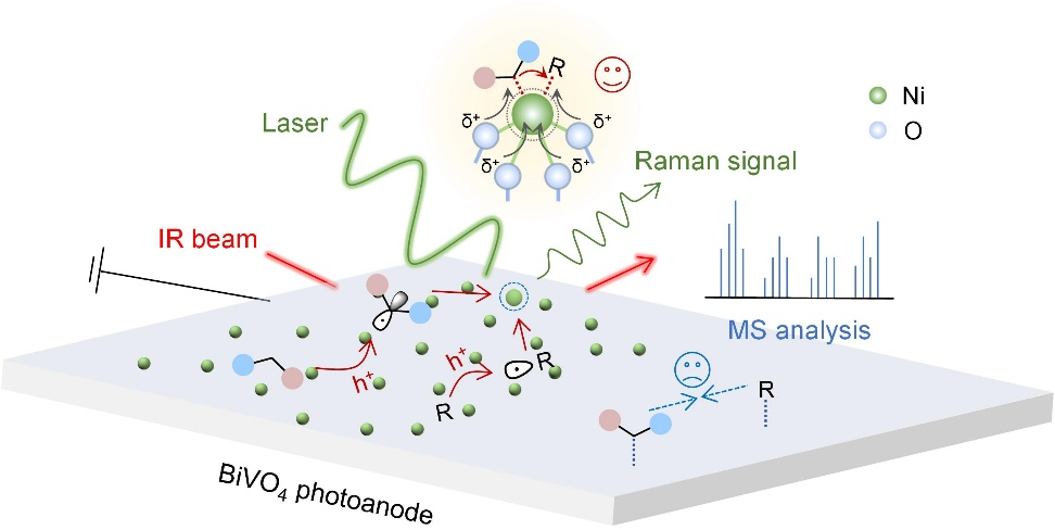 王心晨/方元行课题组,在Journal of the American Chemical Society上发表了题为“In Situ Probing Two Radicals in Halogenation Couplings from Photoanodic Single-Atom Catalysis”的研究论文。在本文中,研究人员构建了一种单原子氧化镍修饰的BiVO4光阳极,创新地将原位拉曼和在线辉光放电质谱等原位技术用于识别卤化反应中的活性位点和中间体物种,为揭示光电催化(PEC)在有机转化中的内在优势提供了通用方法。