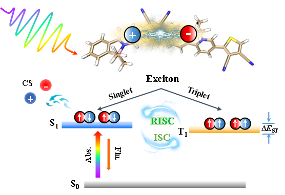 光吸收时产生的激子(电子-空穴对)决定了光催化过程的效率。尽管单重态激子已得到广泛研究,但三重态激子由于其较低的解离效率(源于较大的单重态-三重态能隙(ΔEST)和快速的非辐射复合)而未得到充分利用。为克服这些限制,研究人员通过整合 B-N 路易斯对和氰基设计了聚合物SBN。这种分子结构实现了三个关键目标:(1)降低ΔEST以促进反向系间窜越(RISC)和系间窜越(ISC),(2)延长电子转移和能量转移的时间窗口,(3)产生内电场以促进电荷分离。光谱和计算分析证实,SBN 实现了快速的单线态-三线态相互转换并延长了激子寿命,使两种激子类型都能参与光催化反应。