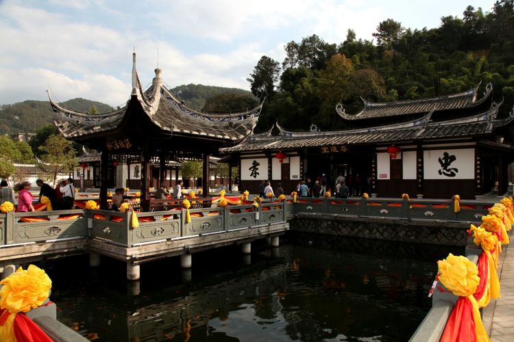 尤溪县是南宋著名理学家、教育家朱熹的诞生地,素有“闽中明珠”之美誉。朱子文化园景区位处尤溪县城南,整体为仿宋建筑,主体由沈郎樟、文公祠、韦斋祠、半亩方塘、观书第、瘗衣处、开山书院、博物馆、朱子画廊浮雕群、画卦洲、青印石等组成。