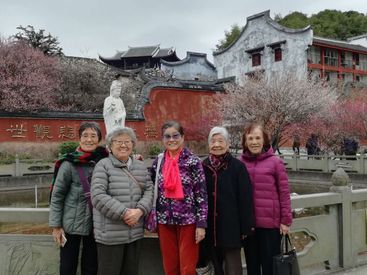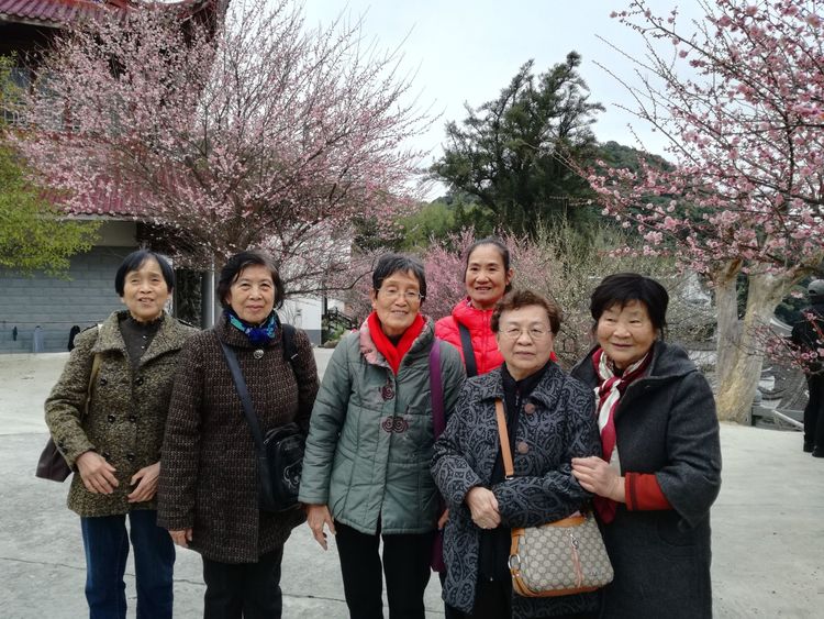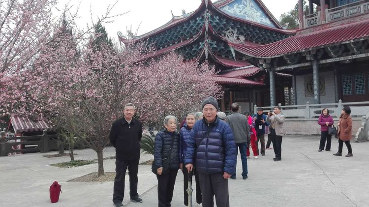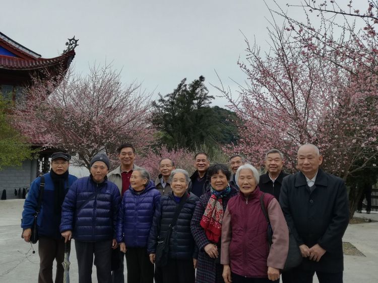 组织退休教师迎新春座谈和前往林阳寺赏梅。