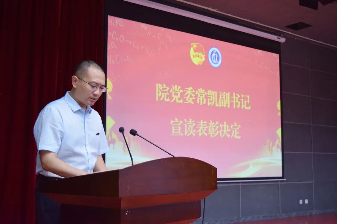 与会人员全体起立,奏唱国歌,大会在庄严的国歌声中正式拉开帷幕。院党委常凯副书记宣读2022年度校级和院级五四表彰决定并对获奖集体与个人表示祝贺,获奖代表依次上台领奖。