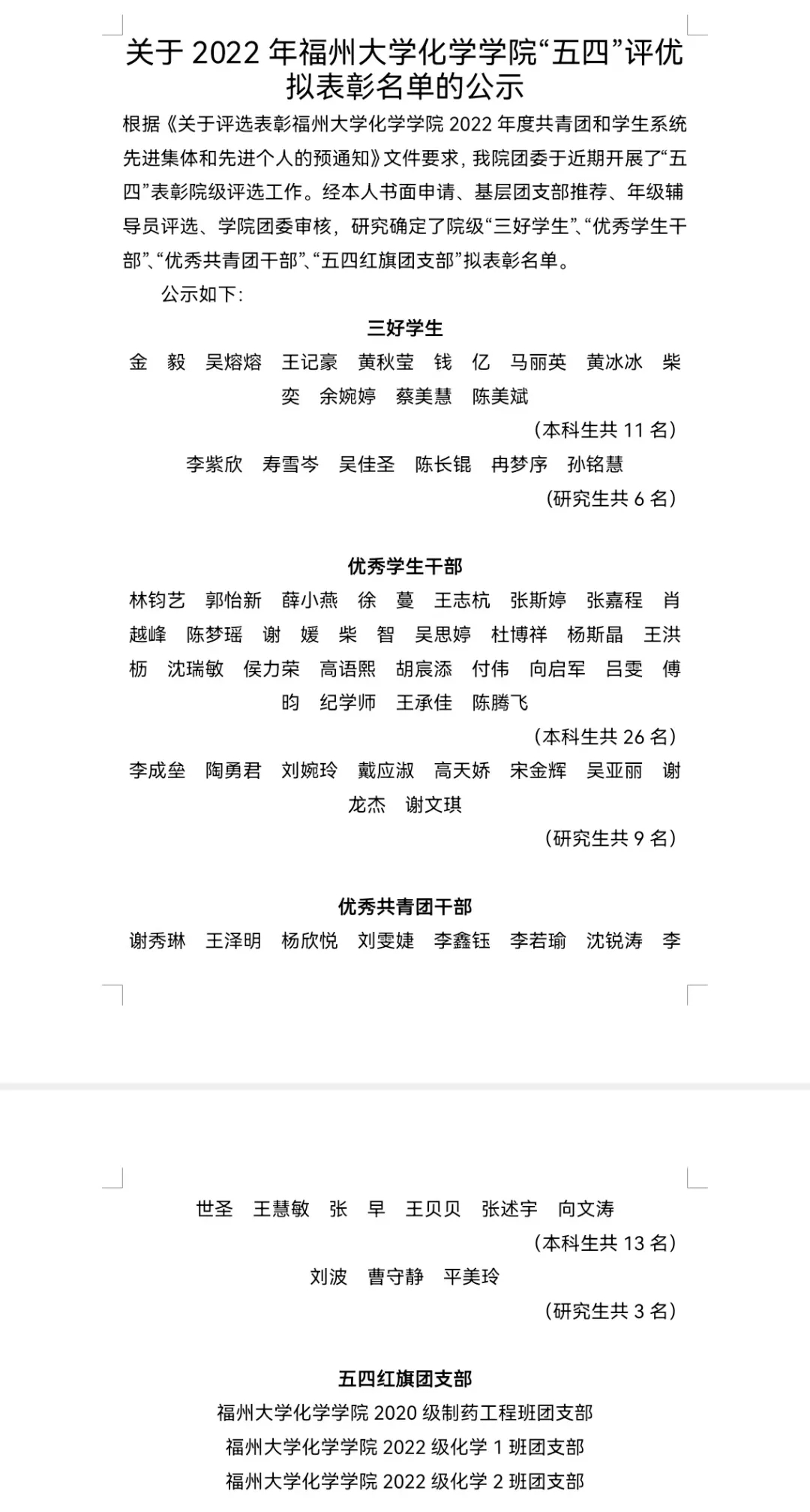 2022年度共青团和学生系统先进集体和先进个人拟表彰名单