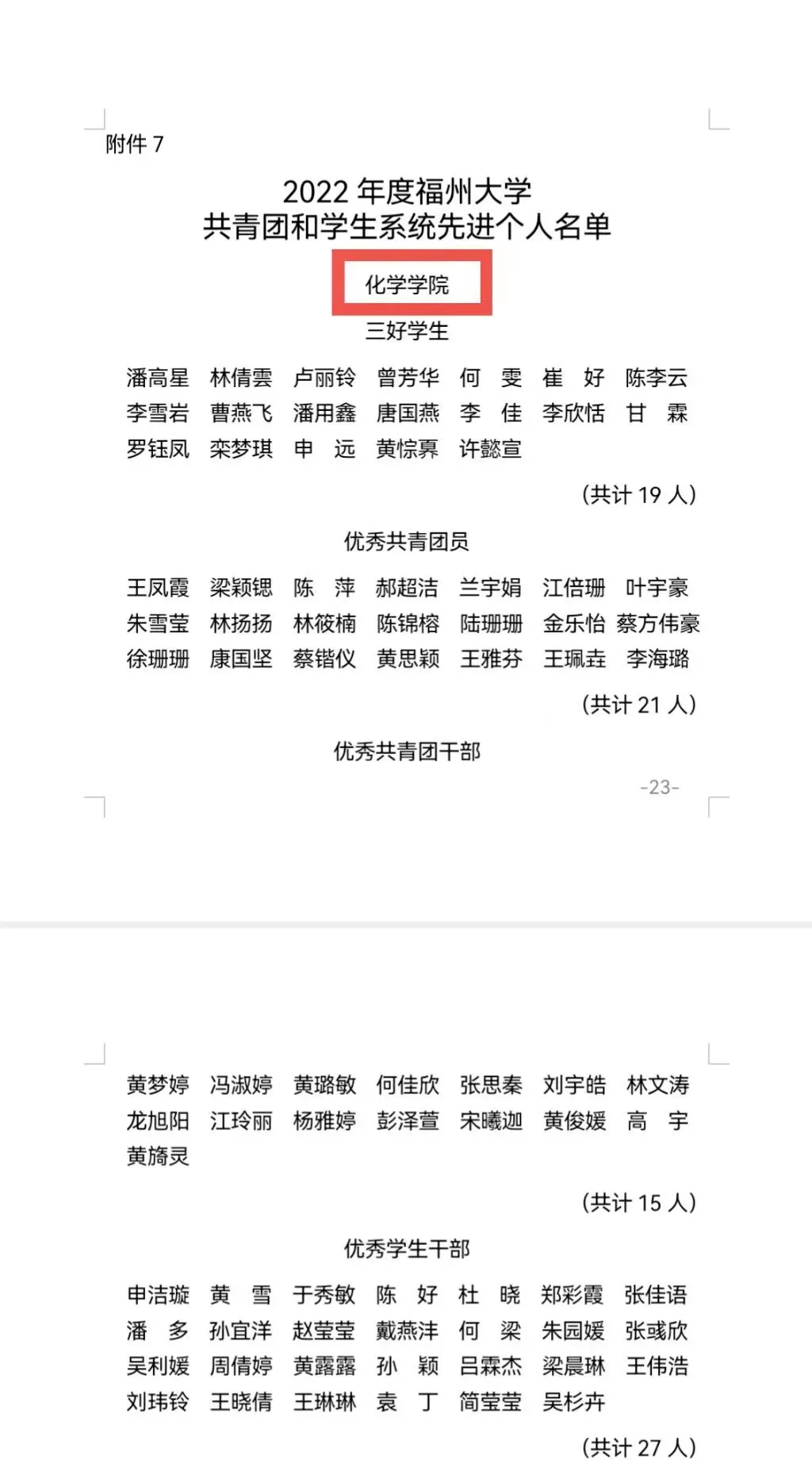 申洁璇等27人被授予“优秀学生干部”荣誉;