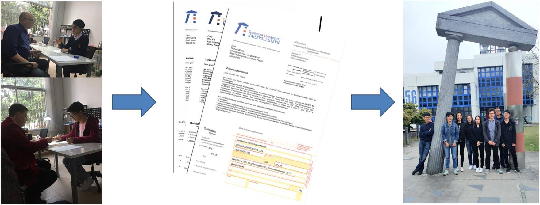 All course achievements by the students at Fuzhou University will be approved by TU Kaiserslautern. The students will start with a German course including the DSH examination which has to be passed at the end of the 6th semester. After this, the students start studying chemistry beginning in the 3rd semester of the TU Kaiserslautern chemistry course and finish with the 6th semester (10 semesters in total). At the end the students receive both a Bachelor degree from Fuzhou University and TU Kaiserslautern.