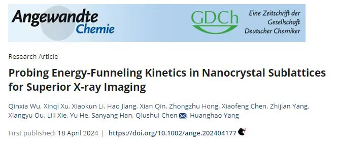 杨黄浩教授课题组在Angewandte Chemie上在线发表了题为“Probing Energy-Funneling Kinetics in Nanocrystal Sublattices for Superior X-ray Imaging”的研究论文。在本文中,研究团队通过利用Gd3+离子来调控纳米晶体中晶体场微环境和电子结构,同时引入Mn2+掺杂作为探测能量转化动力学的辐射发光指示探针。他们提出了关于探测纳米晶格中电荷载流子扩散和复合动力学的新见解,同时实现了高性能的X射线成像。近年来,...